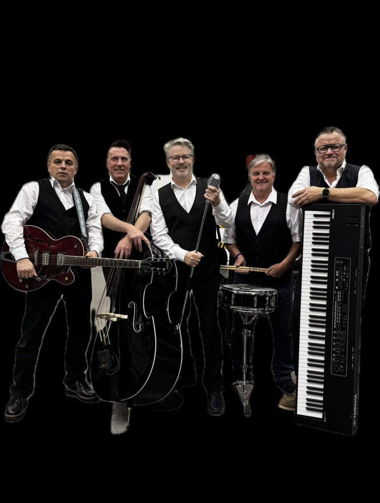 Rocket ´54 – das sind fünf Musiker aus Nürnberg, die sich gesucht und gefunden haben. Purer, energiegeladener Rock`n Roll wie ihn schon unsere Großeltern gehört haben – nur etwas lauter! Getragen von elektrischem verstärktem, pulsierendem Kontrabass und heart beat Drums, verleihen uns harmonik Background und Rollin’ Riffs auf Piano und Gitarre einen unverkennbaren Sound und mitreißende Energie der 50er-und 60er Jahre.